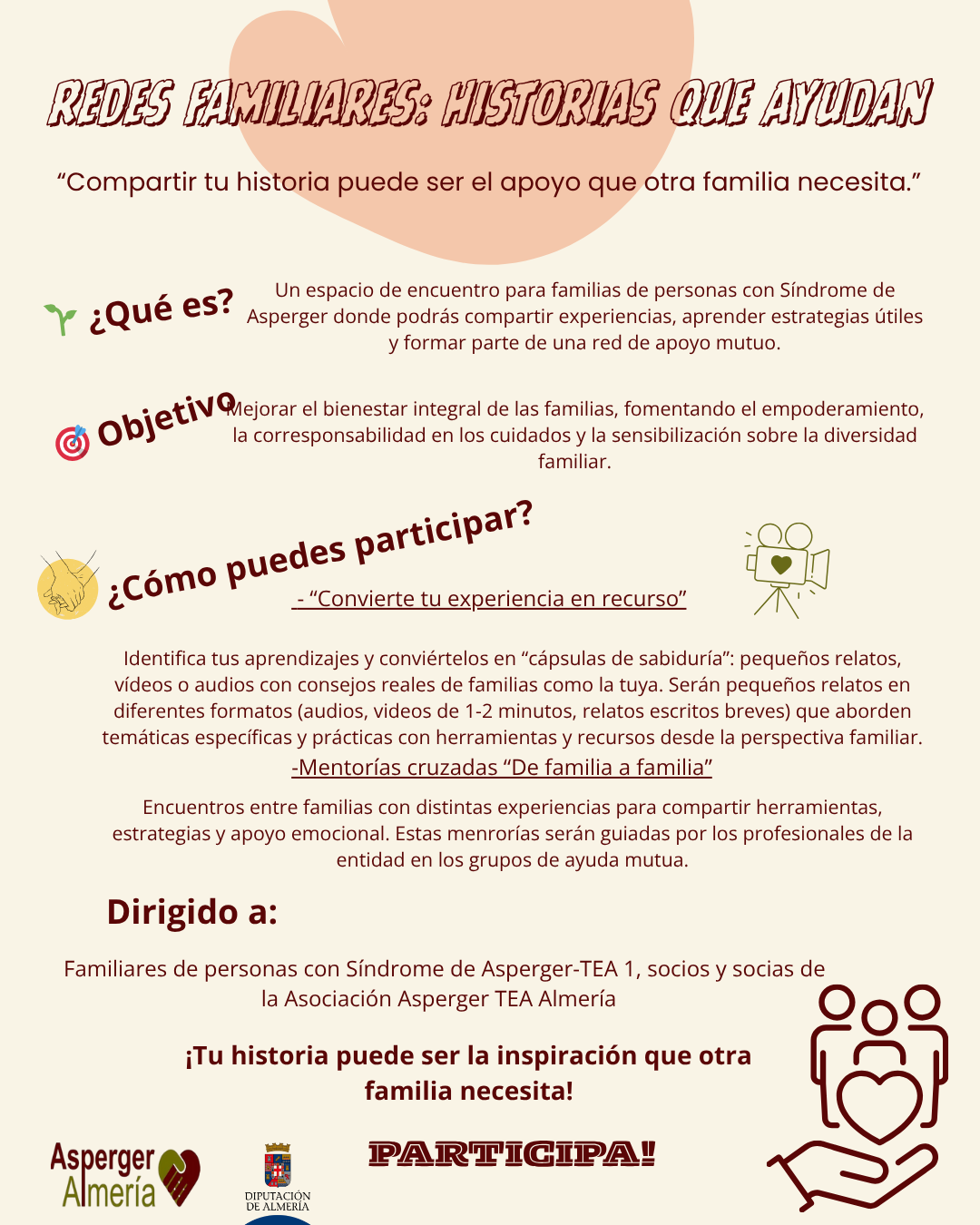 Con este proyecto queremos proporcionar a las familias un espacio innovador y accesible para el intercambio de estrategias prácticas y recursos emocionales, facilitando la gestión del estrés y los desafíos del cuidado diario.